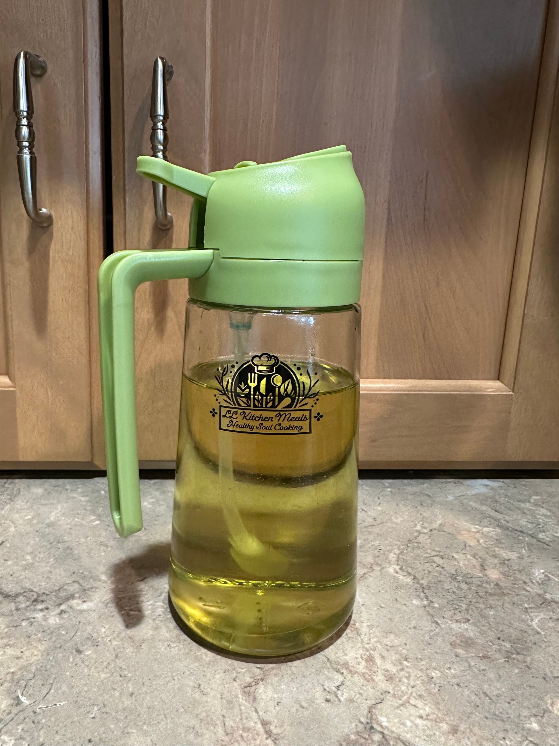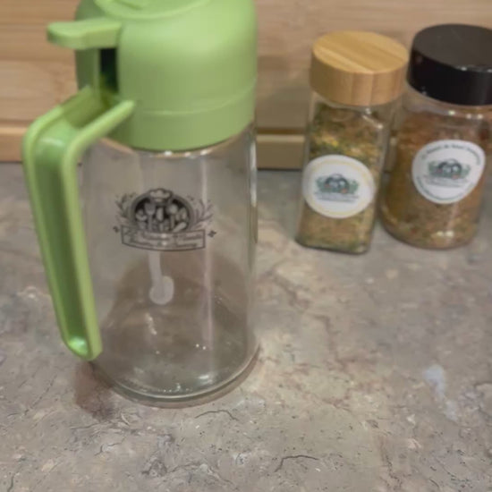 Elevate your kitchen with this stylish, multi-purpose glass oil bottle designed for both beauty and function. Our Luxe Living Dual-Action Bottle gives you the best of both worlds—a fine mist sprayer for even, health-conscious cooking and a controlled pour spout for dressings, marinades, and table service.